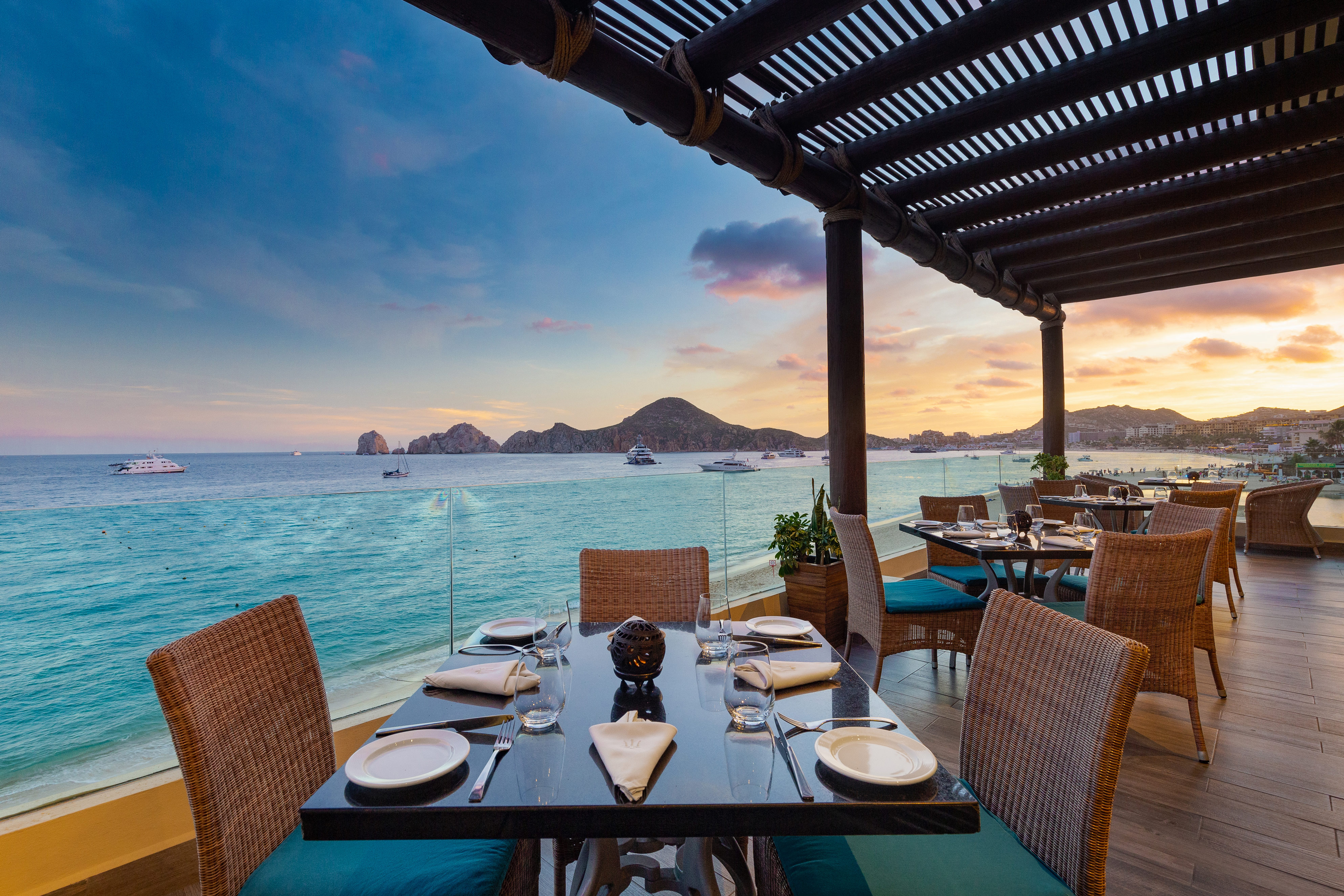 Villa del Arco’s all-inclusive packages enhance the guest experience, ensuring comfort with premium in-room amenities like free WiFi, room service, and thoughtful touches in each suite. Its strategic location on Medano Beach, known for safe swimming and water sports, along with the tranquil setting and excellent service, positions Villa del Arco among the top luxury resorts in Cabo San Lucas.