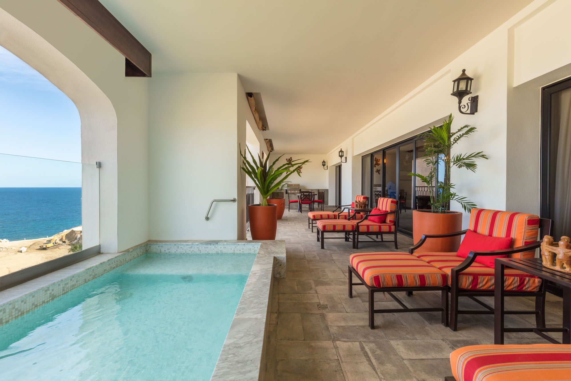Vista Encantada also caters to events and gatherings with versatile venues such as a grand ballroom, meeting rooms, and intimate outdoor spaces like the fire pit and garden kiosk, all poised against the backdrop of spectacular ocean views. The resort offers an all-inclusive gourmet indulge plan, private beach access with beach massages, and customizable vacation add-ons like private transfers and chef services, making it a premier destination for both leisure and special occasions. Located just minutes from downtown Cabo and nearby beaches, Vista Encantada combines elegance, tranquility, and vibrant local culture into a seamless luxury experience.